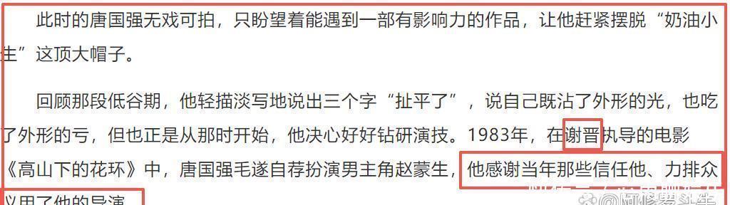 三、被忽略的情义对张中一的缅怀,并不是唐国强那种“人设演绎”。这其实体现了他那份真情实意的自然展现。除了对家人撑起责任感,也对好友珍惜情谊。他对待那些偶然相遇的陌生人,也同样抱有善意与友善之心。谢晋导演,算得上是他早年提携不遗余力的贵人。在他还没走红、处处遇挫的时候。谢晋导演看出他的潜力,顶了个机会让他试镜拍戏。这些年,唐国强一直记着这份暖心的帮助。他在不少公开访问里都曾主动表达过对谢晋导演提携之恩。他还坦率地说过:“没有谢晋导演,今天的我就不会有这个样子。”